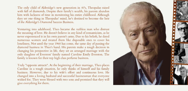 The Alderidge family is inclined to mention that the information stated are solely used for ROLEPLAYING PURPOSES ONLY and does not have any affiliation and connection to the real artist or character used. The names mentioned, places and events that occured are not true and if similar to true events, it is highly coincidental. Images and other references are credit to the rightful owners.CHARACTER NAMES AND ARTIST USEDTheopulus Simeon Alderidge — Michael Cain